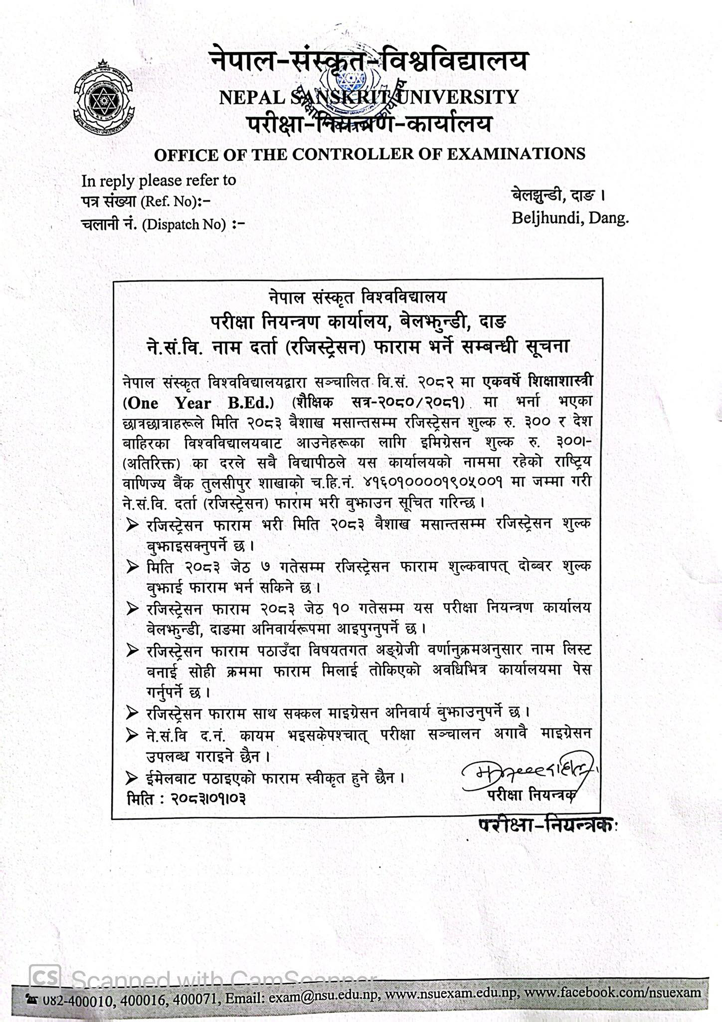 रजिष्ट्रेसन फाराम भर्नेसम्बन्धी सूचना